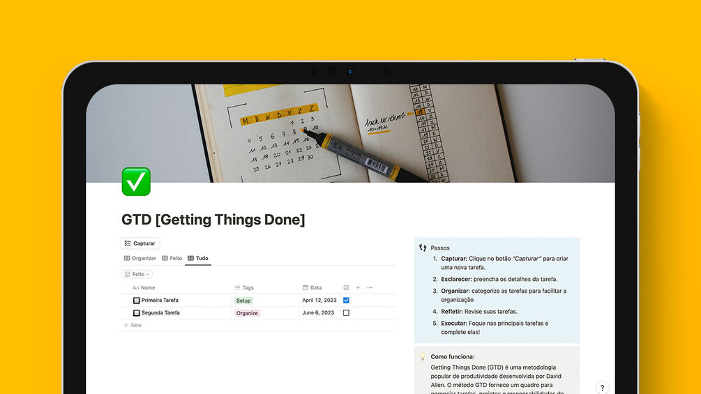 Você leva o template com 11 diferentes métodos, a aplicação deles no Notion e as explicações de cada. Ainda vai poder adaptar, copiar e utilizar em outros templates cada um dos métodos.